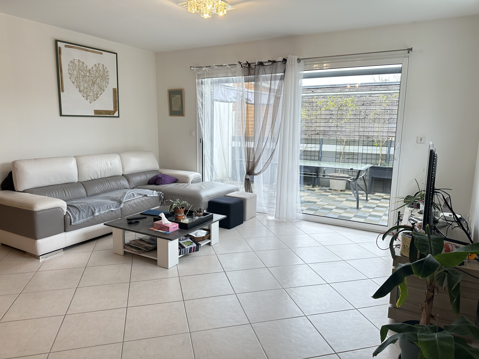 - 96 m² de plain-pied, offrant un espace de vie lumineux exposé plein sud avec une cuisine ouverte aménagée et équipée.