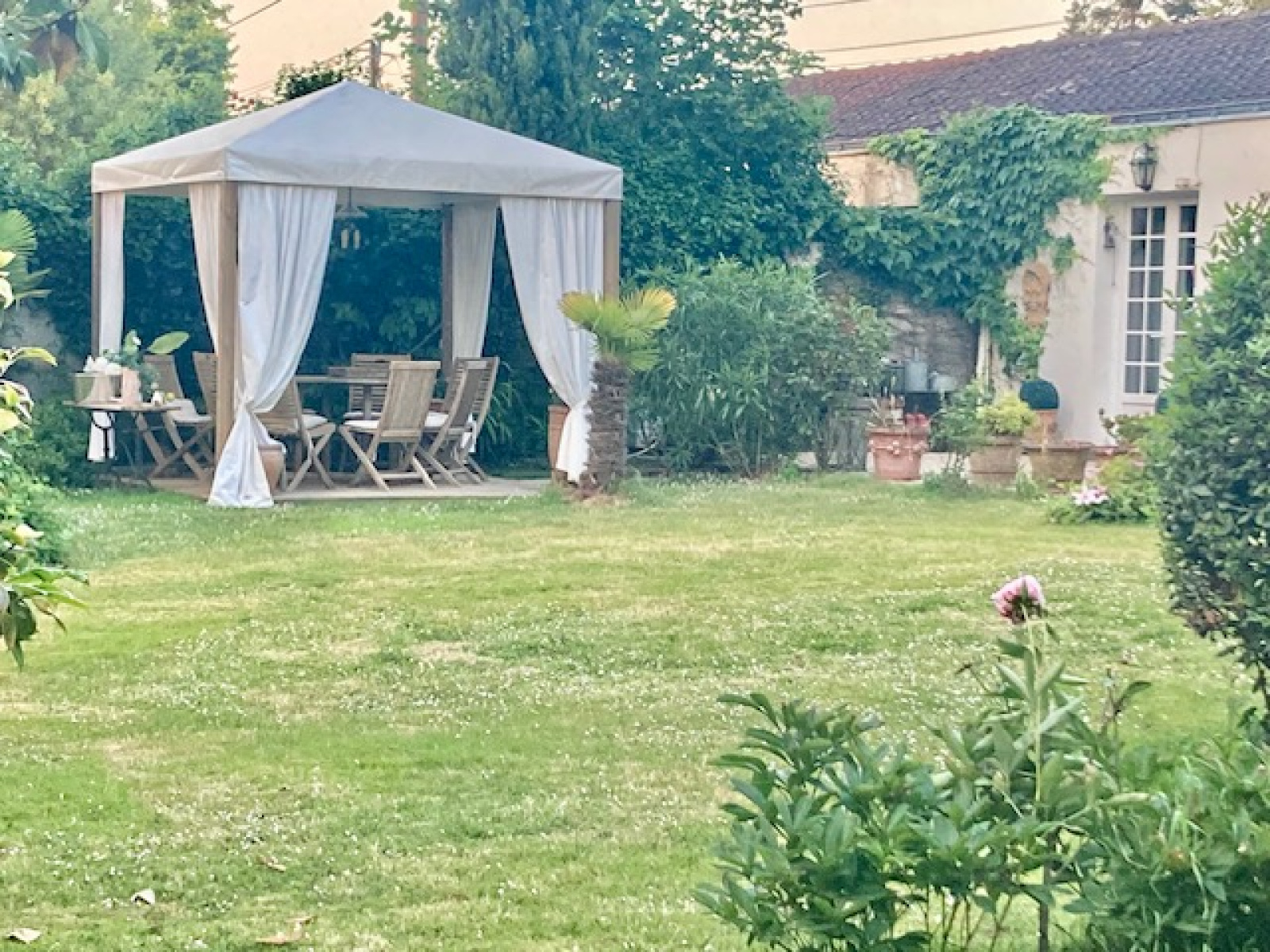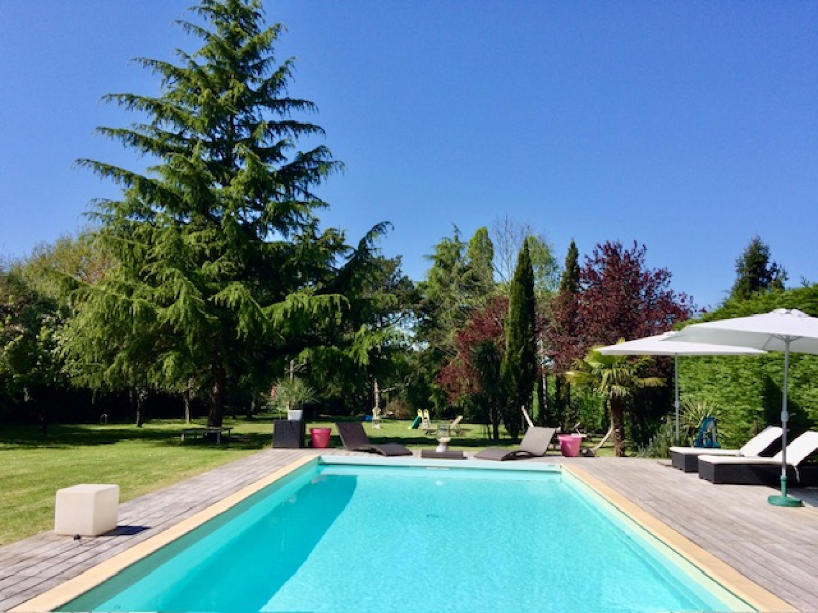 Bien que située à proximité d’un axe routier facilitant vos déplacements, cette propriété offre un cadre qui préserve votre tranquillité grâce à son parc soigneusement aménagé et intime.